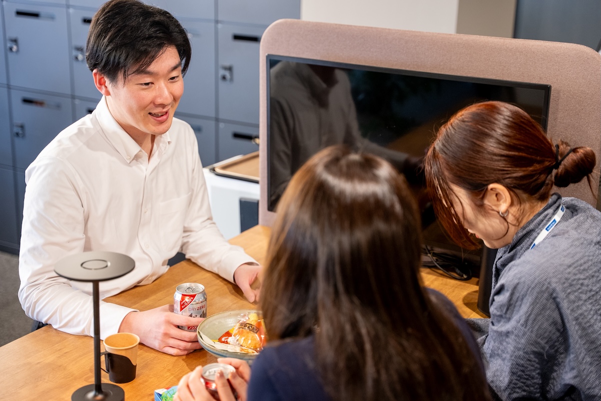 移転したばかりの新オフィスは、開放的な空間設計のもと、集中と対話を自然に生み出します。