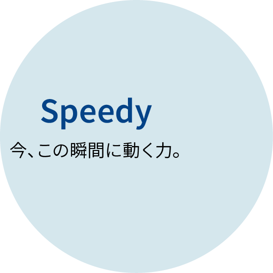 す。市場の変化やお客様のニーズを的確に捉え、即応する体制を整えています。スピーディな行動で、常に期待を超える成果を生み出します。