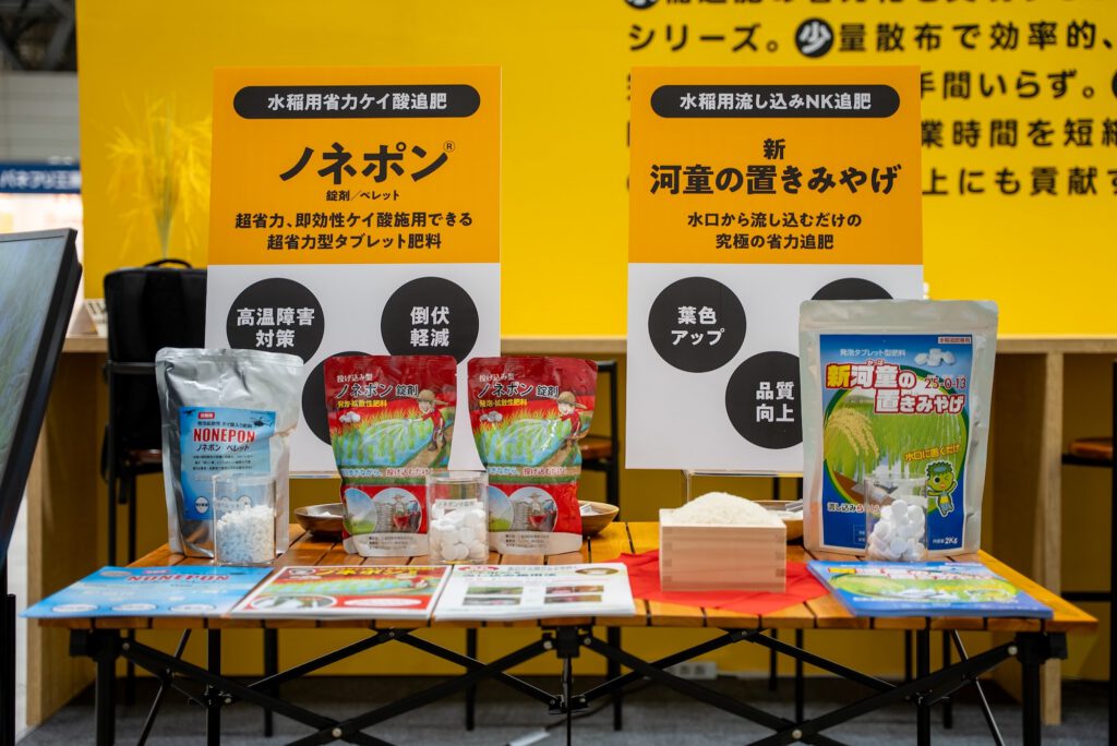 当日ブースでは「ライフインの水稲追肥シリーズ」の展示を中心に、水稲農家様が抱える課題解決に向けたご提案をさせて頂きました。